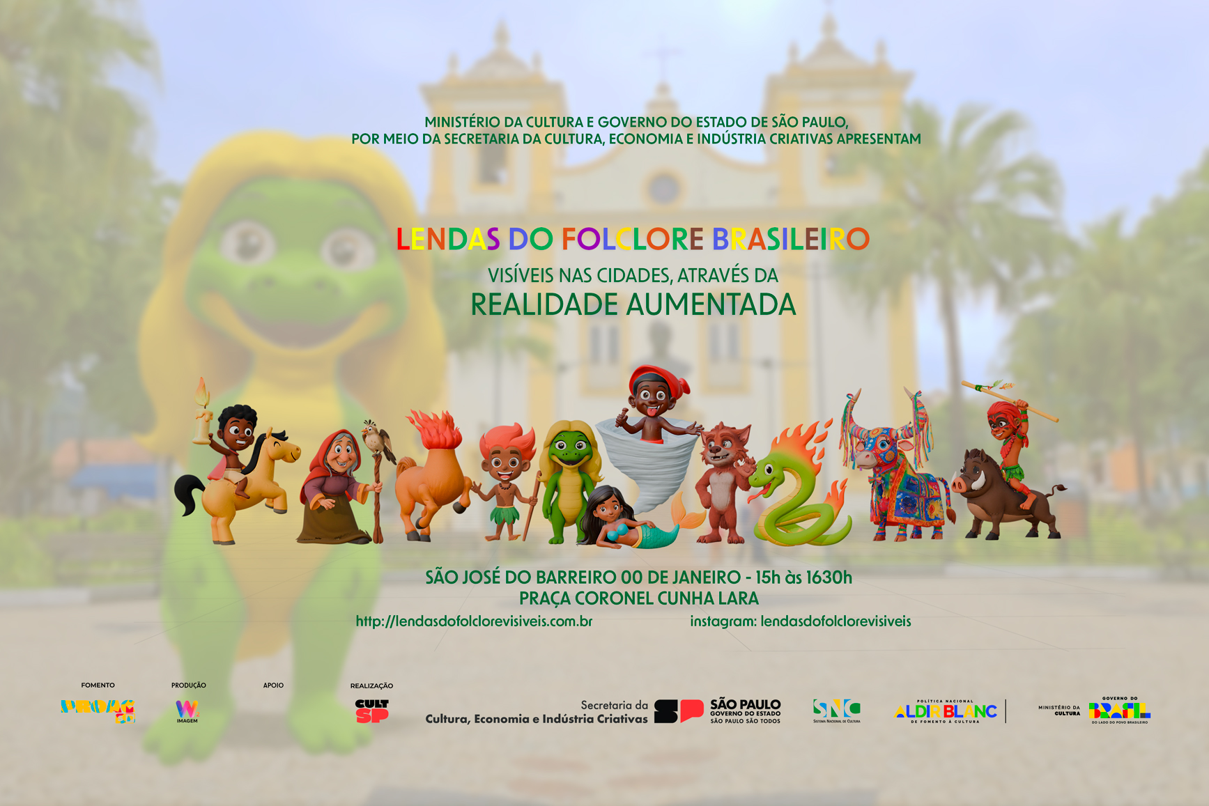 Intervenção visual e teatral, utiliza da Realidade Aumentada e convida o público para visualizar através do seu próprio dispositivo móvel, da leitura de onze QRCode, as lendas clássicas do nosso folclore, podem ser vistas e misturadas no cenário tridimensional nas paisagens das onze cidades: São Luiz do Paraitinga, Taubaté, São José dos Campos, Ilhabela, São Sebastião, Ubatuba, São José do Barreiro, Queluz, Monteiro Lobato, Paraibuna, Salesópolis.